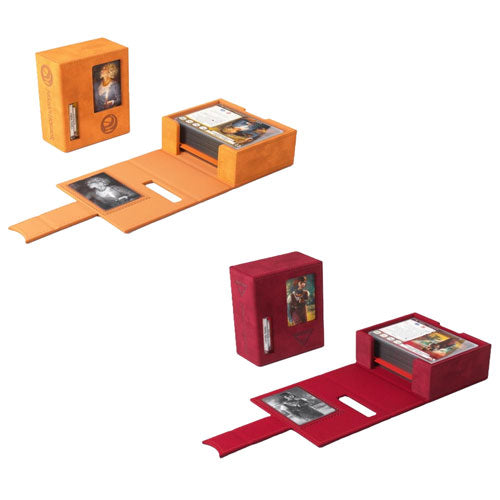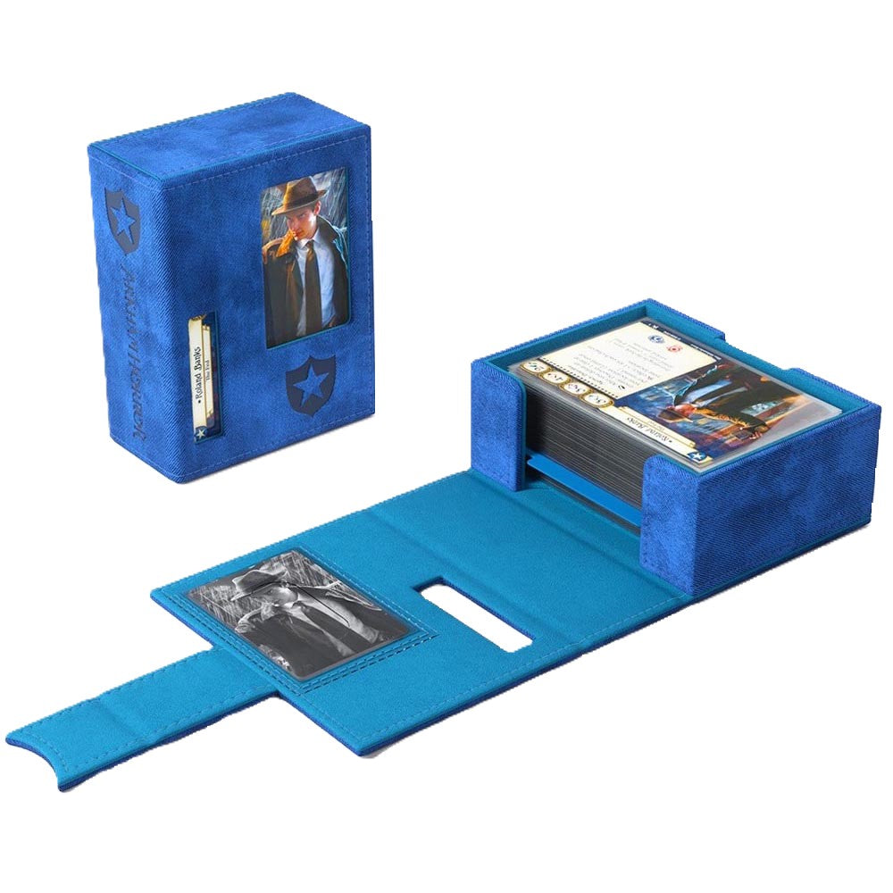 Finally! Gamegenic presents the first officially licensed premium deck box designed specifically for the needs of Arkham Horror: The Card Game players. The exclusive Arkham Horror Investigator Deck Tome is perfectly sized to hold a full investigator deck, even if the cards are single-sleeved. Small notches at the bottom provide convenient access down to the last card.
