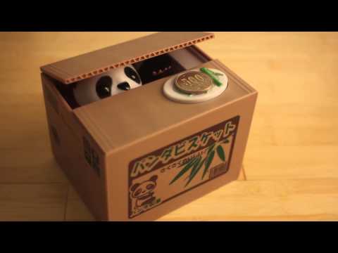 • While the lid is closed, place a coin on top of the white plate. Watch as the lid opens to reveal the cute little cat who peeks out, then snatches the coin with his paw!