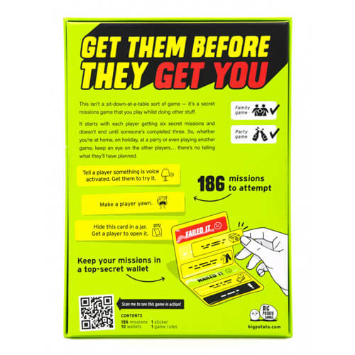 SIX SECRET MISSIONS: In this party game, each player starts with six missions to complete.