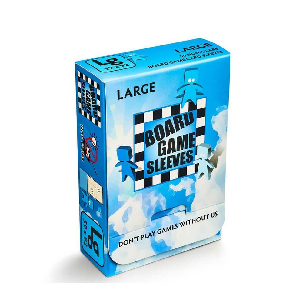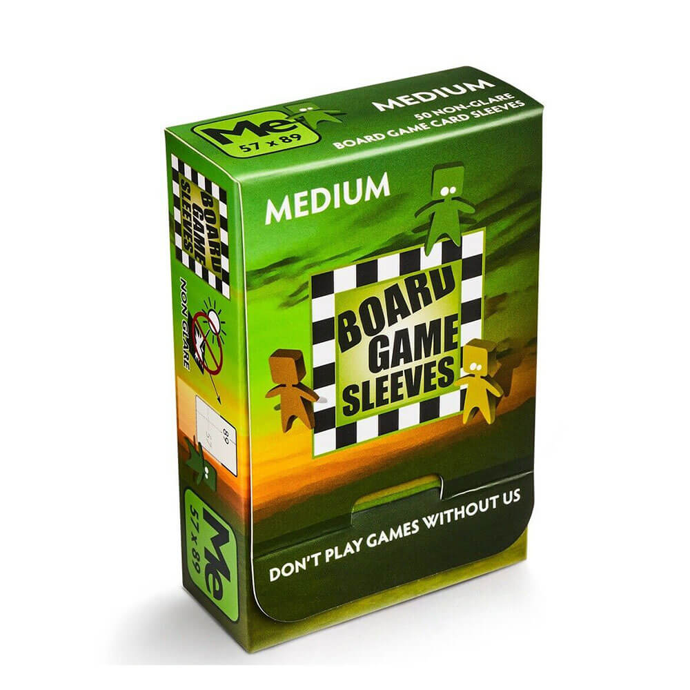 50 non-glare board game card sleeves For cards measuring up to 79 x 120mm (31/8 x 43/4"). This card size is mainly used in ‘Dixit', but also found in other games like ‘Beasty Bar' and ‘Mysterium' The cardbox safely stores 50 sleeved cards, and doubles as a card-holder during play.