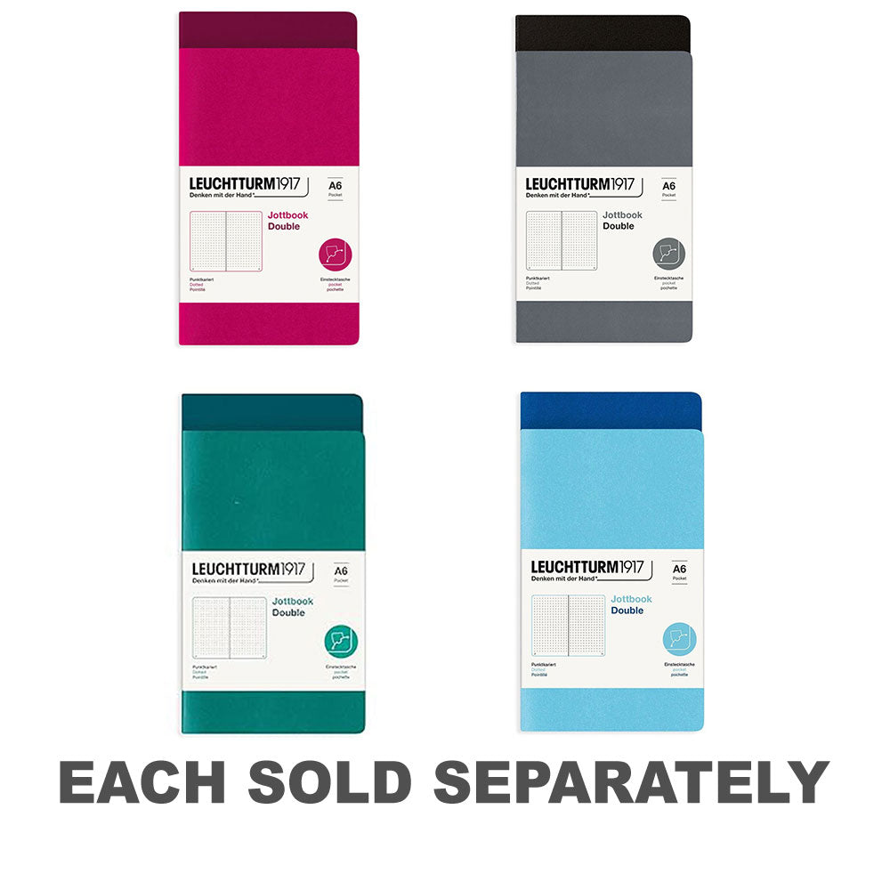 Ready to organize your thoughts with precision? Look no further than the Leuchtturm Twin Pack Jottbook Dotted, offering two dotted notebooks for your bullet journaling, planning, and more. Say goodbye to scattered ideas and hello to structured grids that keep you on track. With its A6 size and durable construction, you'll carry your organization with you wherever you go. Get ready to boost your productivity with the Leuchtturm Twin Pack Jottbook Dotted, and enjoy the satisfaction of organized notes and plans that help you achieve your goals with ease.