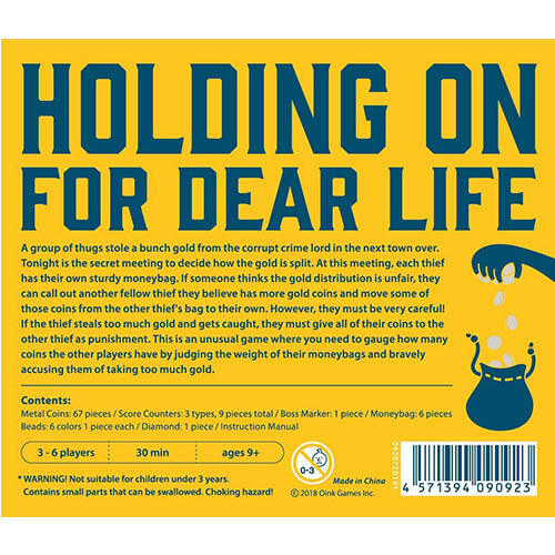 Moneybags, players try to have the most gold coins, with each player having their own bag filled with some number of brass coins. If you think you have the most coins, you might want to exit the round to keep them as others will try to transfer coins from your bag to theirs!