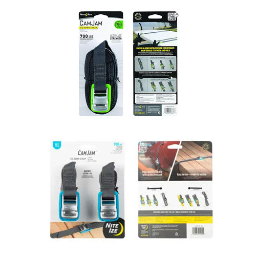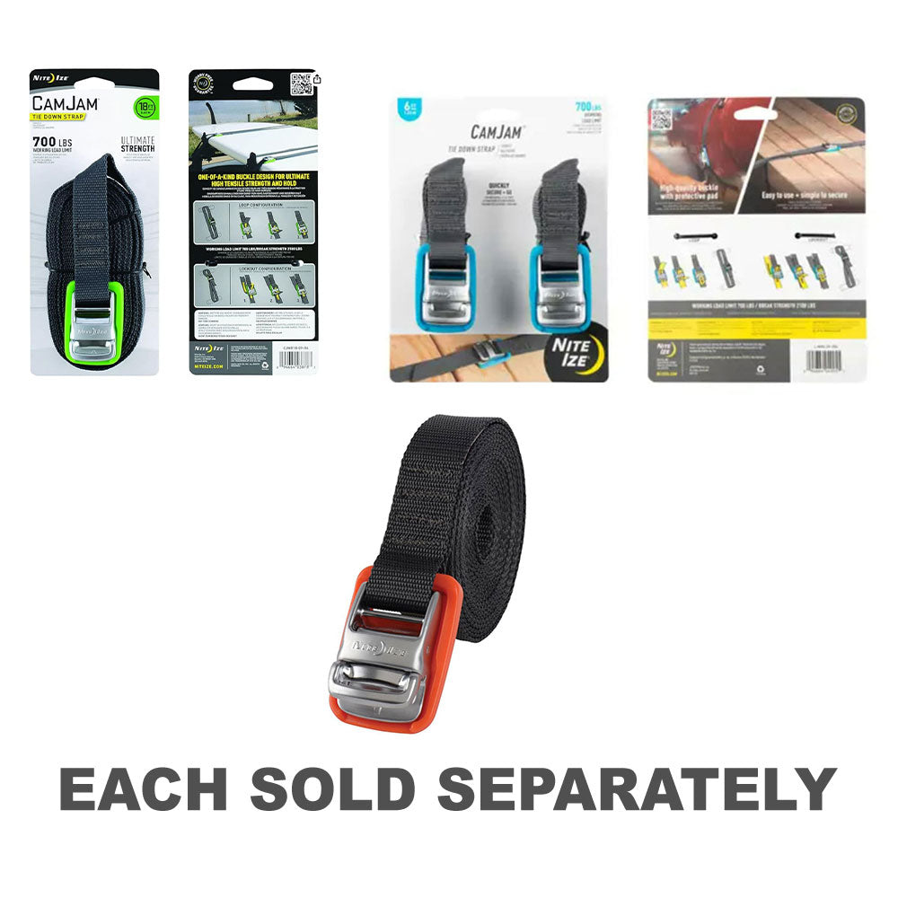 • Simplify your tie-down tasks with the Nite Ize CamJam Tie Down Strap in the convenient 12-foot length, offering a versatile and adjustable solution for securing various loads during transportation.